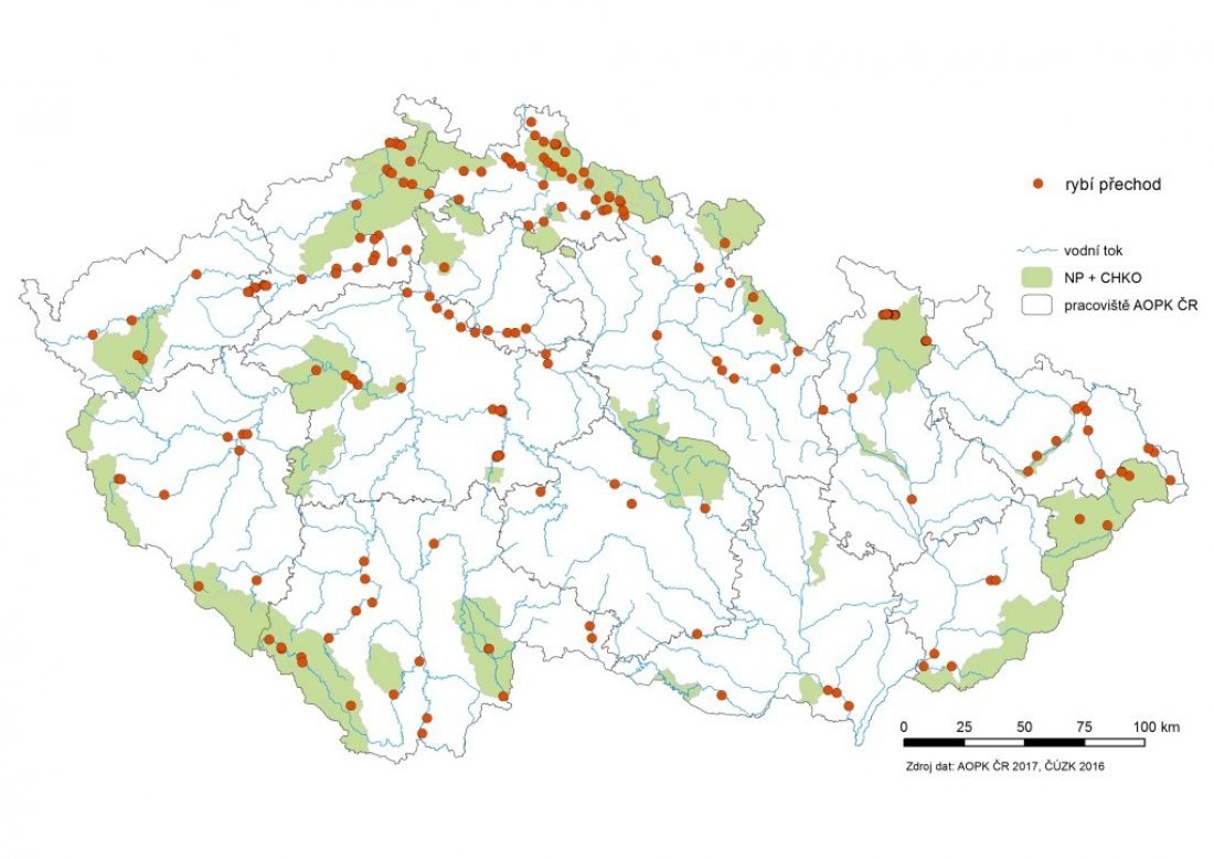 V rámci této podativity bylo v roce 2016 ověřeno 42 rybích přechodů financovaných z Operačního programu Životní prostředí. V mapě č. 4 jsou vyznačeny body, které představují vizuálně hodnocené rybí přechody (červené byly hodnoceny v rámci daného projektu). Kvalita realizovaných staveb je velmi proměnlivá. Technické rybí přechody jsou většinou v pořádku, přírodě blízké jsou naproti tomu velmi často ovlivněné konstrukčními vadami.