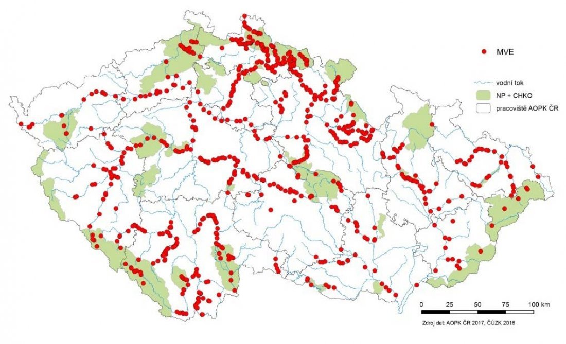Mapa č. 3 Přehled MVE na zmapovaných vodních tocích ČR
